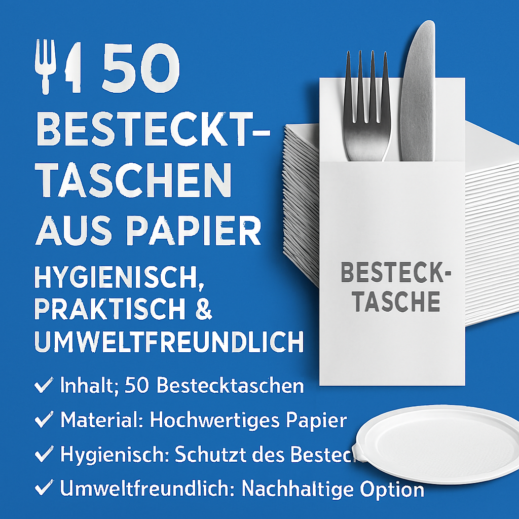 🍽️ 50 Bestecktaschen aus Papier – Hygienisch, Praktisch & Umweltfreundlich
